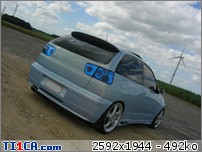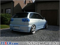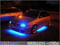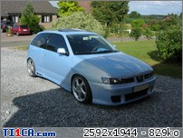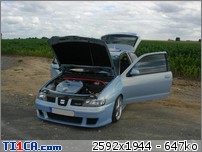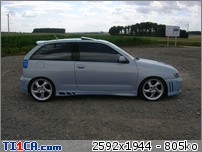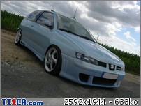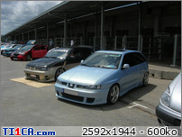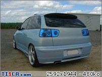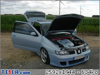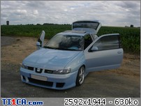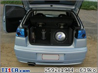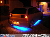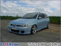 tchoff 0 Posté(e) le 7 mai 2008 Bonjour tout le monde, J'ai déjà présenté ma voiture dans la rubrique présentation, mais je pense que c'est plus approprié de parler voiture dans cette rubrique, donc je le fais aussi ici J'avais une Seat Ibiza 1900D de 1997 de couleur noire que j'avais acheté de base. J'ai refais une peinture complète et l'ai un peu personnalisé pour lui redonner une seconde jeunesse. Elle a été vendue l'année dernière. Après 1 an et demi de boulot après journée, week-end et vacances, je roule ENFIN en Ibiza TDI 90cv de 2001. Je l'avais racheté accidentée et l'ai entièrement démontée pour lui refaire une prépa complète. Pour info, elle avait été bien prise à l'avant droit, puis à "pivoté" pour aller taper avec l'aile arrière droite. L'ancien propriétaire est rentré ainsi avec (toujours roulante) et le capot s'est levé et à peté dans le toit. Donc pas mal de dégâts quand même. Sinon, j'ai remis la caisse à nu et l'ai refais intégralement tout en restant le plus sobre possible. Lors de son achat : Début des travaux : Je passe toutes les étapes car certains d'entre vous connaissent déjà mon skyblog et tout y est détaillé => http://tchoff01.skyrock.com Donc la voici aujourd'hui : En ce qui concerne les modifs, voici une petite liste que je m'étais amusé à faire : Carrosserie – Extérieur : Phares et calandre d'Ibiza Cupra Pare chocs avant Cupra modifié maison en style RS (+ ouies latérales) Prolongation du capot et des ailes Adaptation de poignées d’Audi A6 Elargissement des ailes avant et arrières Lissage des ailes avant Lissage du hayon Becquet Ibiza TDI 110cv Suppression essuie glace arrière Jupes lissées et personnalisées Rétro anglais côté conducteur (petit) Clignoteurs à led fait maison, intégrés aux rétros Feux Lexus teintés bleu Rajoute de pare-chocs arrière Vitres teintées Foliatec Antenne courte chromée Kit de néons à LED undercar avec commande à distance Feux de positions à LED bleue … Châssis : Jantes Porsche Turbo en 8x17" + Adaptateur H&R 25mm Suspension KW combiné fileté Variante 2 Barre anti-rapprochement Protège Carter sur mesure en Alu Train arrière d'une Ibiza Evo II 110cv (freins à disques) Moteur : Silencieux chromé Suppression marmite intermédiaire Peinture protège moteur couleur caisse … Intérieur : Intérieur complet Ibiza TDI 110cv (tableau de bord, sièges, panneaux, etc…) Eclairage plafonnier Seat Ibiza TDI 110cv Fond de compteur TDI 110cv (contour blanc) Éclairage habitacle entièrement modifié (éclairage bleu) (62 leds SMD + 10 led normales) Néons sous le tableau de bord Insertions de leds dans la boîte à gant Volant, pommeau et poignée de frein à main + soufflet ISOTTA Tapis en alu Éléments intérieurs peints couleur caisse Loquets de portes bleus Protections de ceintures OMP bleues Manomètre de pression Turbo + Voltmètre Sono : Modification du bloc radio et de la console centrale (suppression de l'autoradio d'origine moulé à la console) pour y intégrer un autoradio standard Autoradio Panasonic CQ-C5400N Kit éclaté à l'avant Axton 120W 2x180W à l'arrière (Pioneer) Ampli Pioneer Sub Axton 250W RMS Capa 1F Partager ce message Lien à poster Partager sur d’autres sites