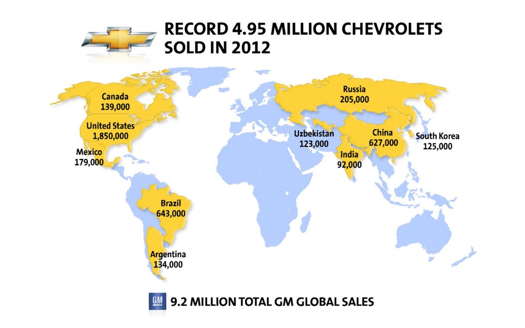 Avicii-clubchevroletquebec 0 Posté(e) le 29 mars 2013 La croissance continue de la marque dans les marchés en émergence constitue la clé des ventes totales de 9,2 millions de véhicules de GM.Chevrolet, connaissant la plus forte croissance au monde, a vendu plus de 4,95 millions de véhicules en 2012, établissant des ventes record à l'échelle mondiale et propulsant les ventes mondiales de General Motors Co. (Bourse de New York : GM) à plus de 9,2 millions de véhicules, hausse de 2,9 pour cent par rapport à 2011. Bien que les États-Unis constituent le plus important marché individuel pour Chevrolet avec des ventes totales de 1,85 million de véhicules, plus de 60 pour cent des ventes de la marque proviennent d'autres marchés, y compris le Brésil (643 000), la Chine (627 000), la Russie (205 000), la Corée du Sud (125 000) et l'Inde (92 000). Ces pays ont connu des ventes intéressantes en raison du lancement de nouveaux modèles. « Chevrolet se trouve au coeur du lancement de nouveaux produits le plus dynamique de son histoire », déclare Marc Comeau, vice-président des ventes, du service après-vente et du marketing de GM Canada. Guidée par une nouvelle vision mondiale, « Trouver de nouvelles voies », enracinée dans le patrimoine d'ingéniosité de la marque, Chevrolet s'apprête à poursuivre sa croissance en 2013 grâce au lancement au Canada de 13 produits neufs ou largement remaniés, y compris les toutes nouvelles Trax, Corvette Stingray, Silverado et Impala, puis à 12 lancements de produits additionnels à l'échelle mondiale. Chevrolet établit sa présence mondiale en produisant de petites voitures comme les modèles Cruze, Sonic/Aveo et Spark, des intermédiaires comme la Malibu ainsi que des multisegments et des camions comme les modèles Spin, Trax, Orlando et Colorado, conçus en fonction des conditions routières et des préférences variées à l'échelle mondiale. La berline compacte Cruze a mené la marque grâce à des ventes mondiales de plus de 755 000 voitures en 2012, ce qui en fait la famille Chevrolet la plus vendue au monde avec près de 1,9 million de ventes depuis son lancement en 2009. Au Canada, Chevrolet lancera un modèle Cruze à moteur diesel en 2013.Voici les 10 meilleurs marchés pour les ventes de véhicules Chevrolet en 2012:Marché Ventes totales en 2012États-Unis 1,85 millionBrésil 643 000Chine 627 000Russie 205 000Mexique 179 000Canada 139 000Argentine 134 000Corée du Sud 125 000Ouzbékistan 123 000Inde 92 000À l'échelle de la société, les ventes de GM en Amérique du Nord ont augmenté de 3,2 pour cent, puis de 10,1 pour cent dans le cadre des activités internationales, par rapport à 2011.Résumé des ventes mondiales de General Motors:Véhicules 2012 Véhicules 2011 Variation (%)Amérique du Nord 3 018 576 2 925 256 3,2Europe 1 607 176 1 750 599 (8,2)Amérique du Sud 1 046 594 1 066 402 (1,9)À l'international 3 613 645 3 281 245 10,1Total mondial 9 285 991 9 023 502 2,9General Motors Amérique du Nord = États-Unis, Canada, Mexique et autres marchés nord-américains.General Motors Europe = Europe occidentale, Europe centrale, Europe orientale ainsi que Russie et CEI.General Motors Activités internationales = Asie-Pacifique, Afrique du Nord, Afrique sub-saharienne et Moyen-Orient.Remarque: L'Iran, la Corée du Nord, la Syrie et le Soudan sont exclus des volumes des ventes et des parts de marché. Partager ce message Lien à poster Partager sur d’autres sites
