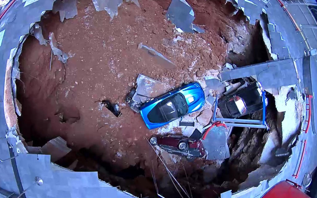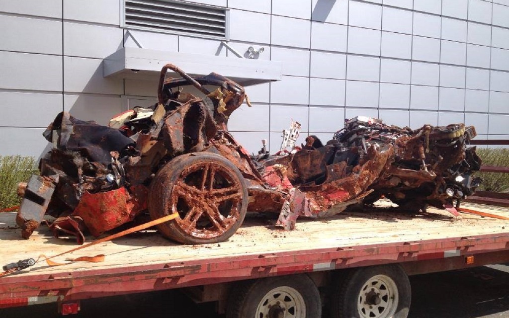 Avicii-clubchevroletquebec 0 Posté(e) le 6 septembre 2014 Le 12 février dernier, huit Corvette – logeant au National Corvette Museum situé tout près de l’usine où la légendaire sportive américaine est construite – étaient englouties dans un trou béant de 40 pieds de diamètre et de 25 à 30 pieds de profondeur.Ces huit Corvette étaient : un modèle 1962, une 1984 PPG Pace Car, la millionième Corvette (1992), une édition Ruby Red 40e anniversaire (1993), une ZR1 Spyder 1993, une Z06 Mallett Hammer 2001, la 1 500 000e Corvette (2009) et une ZR1 Blue Devil 2009.Si les premières Corvette ont été relativement faciles à ramener au niveau du sol, l’opération a été beaucoup plus ardue pour les dernières. Justement, hier, le 9 avril, la dernière Corvette, la Mallett Hammer 2001 a enfin pu être sortie du trou. De son tombeau, pourrions-nous dire puisqu’elle est dans un état irrécupérable.General Motors avait promis de restaurer les huit Corvette mais, devant l’impossible nul n’étant tenu, il y a de fortes chances que cette Mallett Hammer demeure dans son état actuel. Partager ce message Lien à poster Partager sur d’autres sites