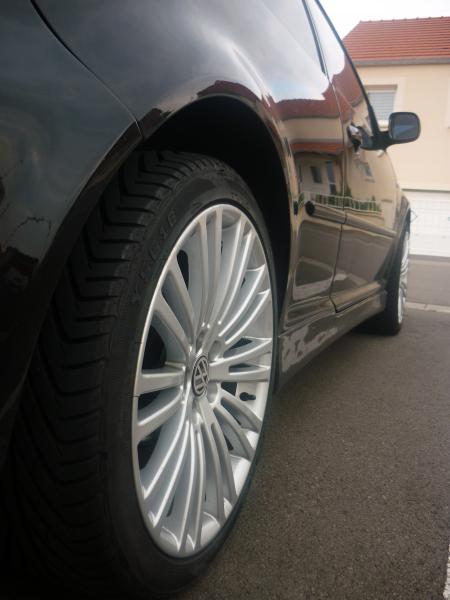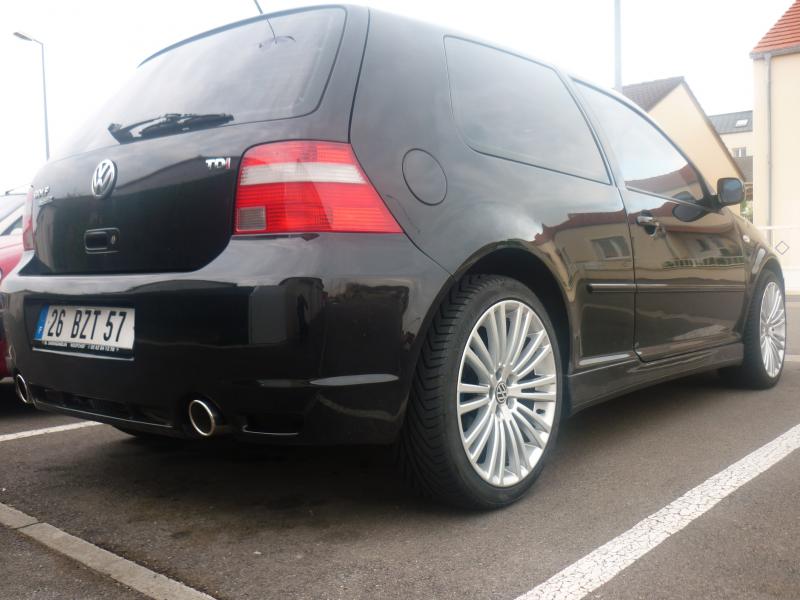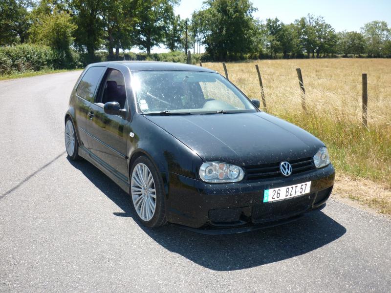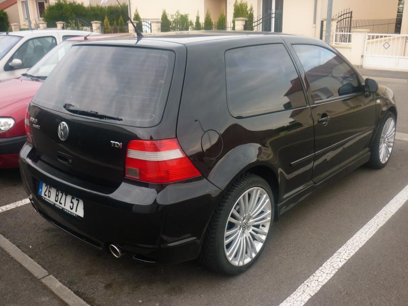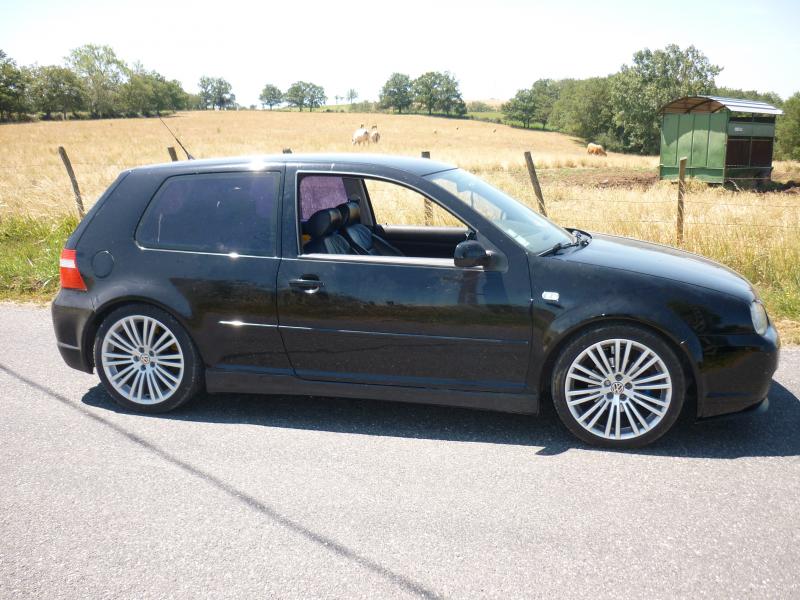 dar 0 Posté(e) le 12 décembre 2010 Ma Golf MODEL : TDI 100 ANNEE : 2003MOTEUR : ATD COULEUR : Noir L041Equipements d'origine: Climatronic Volant cuir 3 branches pommeau cuir Anti brouillard avant Options finition Match II: Sieges sports Jantes Route 66 16" Fond de compteur Match II, cerclage alu Essuis glace et bras Aerotwin Modifications: Veilleuses effet xénon EGR desactivé Spoiler avant GTI 25th (répliqe) changé pour un pare choc .:R32 (très bonne réplique) Peinture des étriers en bleu façon .:R32 Bas de caisse GTI 25th (réplique) changés par des bas de caisse .:R32 (réplique) Spoiler arrière V6 (OEM) Sorties échappement en 2*70mm Activation du anti carjacking par JJ Picot et Damien Activation d'ouverture et fermeture des vitres à distance par JJ Picot et Damien Vitres teintés : clair à l'avant et fumé moyen à l'arrière Interieur cuir noir chauffant Jantes Golf V .:R32 en 18" (répliques) Accoudoir imitation cuir noir PC arrière .:R32 Sortie en duplex en 2*90mm Sièges chauffants : trop la classe Repose pied .:RLine Régulateur de vitesse (depuis le temps que je le voulais ) désiglage "Match II" et "TDI" Xénon R32 OEM avec kit HID 6000K seconde monte avec ampoules d2s grâce à l'aide de Boubou93 pour ses nombreux conseils! Essuis glace et bras arrière GV (Aerotwin) un grand merci à Opmotorsport Projets: Système complet du TDI 130 (acheté, en attente de pose) Becquet .:R32 (réplique) (plus qu'à le peindre) B4 avec ressorts H&R -35 Reprogrammation ATH pour aller chatouiller les 170 cheveaux et 370 Nm avec embrayage de VR6 et volant moteur G60, ou golfopeos pour avoir 2 fichiers : un soft d'environ 140-150 cheveaux pour rouler tout les jours et l'autre en hard pour déconner parfois Kit lave phareMise à jour le 1 Décembre 2010 : 171.000kmPhotos lors de mon achat : 126000kmMaintenant : Partager ce message Lien à poster Partager sur d’autres sites