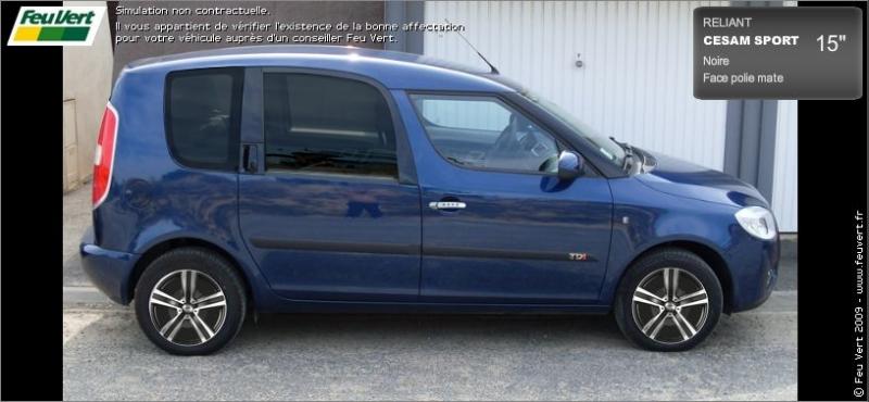 gluon2000 0 Posté(e) le 1 mars 2009 Bon, je suis toujours traumatisé par mes jantes en tôle et je veux des jantes alu! En ce moment, y'a 2 promos 1 jante achetée 1 offerte soit environ 340€ les 4 jantes 15" avec monte des pneus existants+valves+equilibrage.Le problème, j'arrive pas à me décider!Aidez moi!Choix 1: Jante Targa Spyder, noir mat, alu poli (promo Norauto):Rendu sur Roomsty:Le poli c'est joli mais trop de branches selon moi pour le Room.Choix 2: Cesam Sport Reliant, noir mat, alu mat (promo Feu Vert):Rendu sur Roomsty (ce n'est pas exactement le même modèle):Le mat c'est moins joli mais les 5 branches ça déchire!Ma femme et mes merdeux sont à donf pour la Cesam et vous? Partager ce message Lien à poster Partager sur d’autres sites