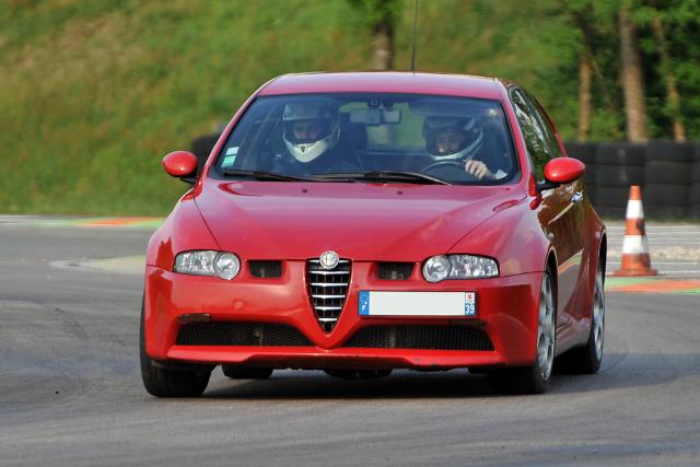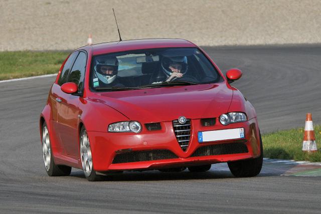 R.P.M1 0 Posté(e) le 2 juin 2014 Moteur : V6 3.2L 24v Puissance : 260 cv (estimé)Poids : 1380 kg (estimé)Utilisation : un daily drive efficaceChâssis : il faudra lire le topic Pneus : là aussi il faudra lire le topic Back in Avril 2010 ou je ramène cette 147 GTA (de 2003) D'Aix-les-Bains, je dois être le 3 ou 4ieme proprio, la voiture avait 109000 km.Rouge couleur par défaut, je cherchais une banche nacrée évidemment, plusieurs m'ont échappées, ainsi va la vie...Après m'être habitué au V6, en comparaison des 2L T16, je suis sous le charme, le son, la souplesse du moteur, la direction de la 147, la commande de boite et son étagement. Mais on cherche toujours mieux!!!Alors pour moi le mieux pour cette auto, c'était un différentiel autobloquant pour améliorer la motricité et surtout remplacer le diff d'origine fragile, redonner un peu de souffle au V6 dans les tours car beaucoup bridé par ses énormes pré-catas, diminuer le roulis.ci dessus :- collecteurs inox oem alfa CF2- downpipes inox Alfatune Equal Lenght- décata inox Scorpion- barres anti-roulis AV/AR 26mm/18mm réglables 3 positions- biellettes de barres stab AR réglables whiteline- embrayage neuf oem- differentiel autobloquant Alfa Q2 oem, tarage 35% en accel, 25% en décélération- renforts de suspension AR Unicorse (non installés)- bras AR Hardrace rotulés et réglables (non installés)On s'applique pour le momifiage des collecteurs, préalablement repeint à la Jelt HT :Un petit rendu sonore une fois installé, c'est sympa en vidéo, en vrai c'est beaucoup trop métallique à bas régimes, il faudrait toujours rouler au dessus de 4500tr, alors que le régime de croisière normal est de 2500tr à peine.... Fin Mars 2011 voir début Juin, mon dépucelage sur circuit :été 2011, quelques travaux avec le remplacement du radia de flotte, la suppression de celui de clim, pour info j'installe le 3ieme radia de flotte sur cette auto, l'oem était réputé fragile, le second Kale était merdique du point de vue du sertissage, et l'actuel est un de 156 2.5L V6 identique au 3.2L mais 100e moins cher la peinture et la bande thermique du collecteur avant vieillissent bien: Partager ce message Lien à poster Partager sur d’autres sites