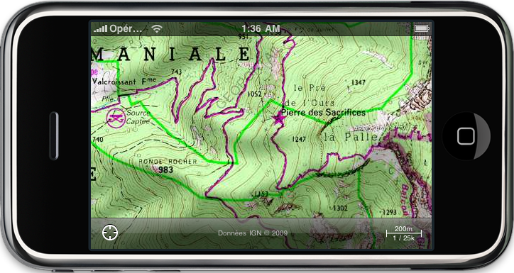 Nicodisco 0 Posté(e) le 4 mai 2010 Deja présenté par Vanray il me semble...http://iphone.geolives.com/Fonctionne pas trop mal pour moi. Partager ce message Lien à poster Partager sur d’autres sites