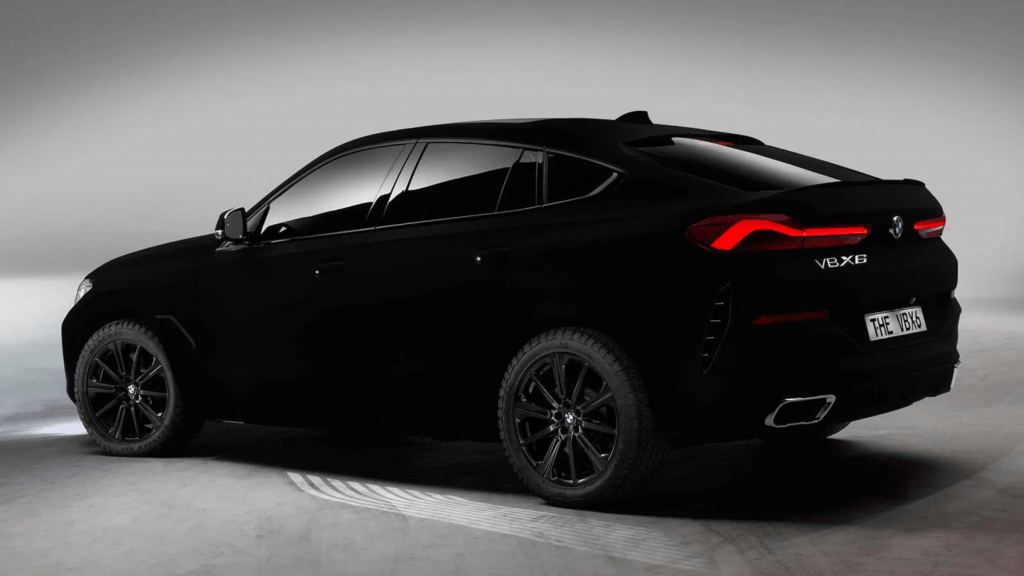 Photo de l'arrière du BMW X6 Vantablack : la voiture ultra-noire de la marque allemande.